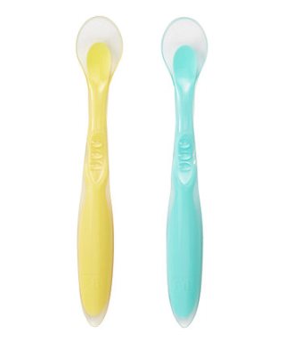 | At a glance Help your little one take their first mouthfuls with these super soft spoons with super soft silicone tips which are gentle on little mouths. Features and benefits • suitable from 4 months • handy set of 2 spoons for everyday use • made from soft silicone that is odour resistant and taste free • long ergonomic handles with comfortable grip • soft and flexible spoon tips are delicate on sensitive gums • rounded and shallow spoon tips • top rack dishwasher and microwave safe • suitable for all approved sterilisation methods • integrated spoon rest to prevent surface contact Fabric Composition : silicone Care Instructions : Suitable for all approved sterilisation methods. Wash before first use and after each use. Wash the product thoroughly in hot, soapy water or in the top rack of a dishwasher. Dishwasher safe (max 65 degrees c) - food colours in the dishwasher may discolour the product. Do not store in direct sunlight or near a source of heat, this could damage the product. Do not allow to come into contact with solvents or harsh chemicals, this could damage the product. Some foods will stain this product. Do not use in an oven or grill. Safety Warning : For your child's safety and health Always use this product with adult supervision. Before each use, inspect the product. Throw away at the first sign of damage or weakness. Always stir heated food and check the temperature before serving. Keep all components not in use out of the reach of children. What's in the Box • 2 x spoons Brand : Mothercare Weight : 0.061 kg Height : 1.2 cm Width : 16 cm Depth : 2 cm Colour : Multi Safety compliance : complies with BS EN 14372 Product Information Suitable from 4 months. The mothercare flexi tip spoons are perfect for both baby and parents to use. The ergonomic handle has been specially designed for parents to comfortably hold using the ridged finger grooves and baby to grip from the chunkier base of the handle. The long spoon handle is also great for reaching into tall jars and containers so you can ensure no food is missed. The handle has an integrated spoon rest to prevent the spoon tip from touching table tops to keep it hygienic when dining out and about. The spoons are made from 100% silicone making them our softest weaning spoon. They are extra flexible and delicate on sensitive gums which is especially important when teething. The silicone is odour resistant and taste free. The rounded and shallow spoon tips are perfectly sized for your little one, offering a little amount of food at a time for your babies first tastes of purees and chunkier foods. Top rack dishwasher safe, microwave safe and safe for all approved methods of sterilisation, these spoons are BPA free |