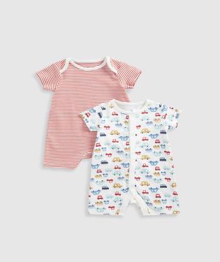 Features and benefits •2 all-in-one outfits •Responsibly sourced cotton •Interlock knit feels soft, stretches easily yet keeps its shape wash after wash •Softly bound hems for comfort •Nickel-free popper fastenings for easy dressing and changing •Envelope neck which stretches for easy dressing Fabric Composition : 100% Cotton Instructions : Machine washable at 40 degrees Colour : Red