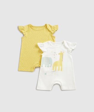Features and benefits •2 all-in-one outfits •Responsibly sourced cotton •Interlock knit feels soft, stretches easily yet keeps its shape wash after wash •Softly bound hems for comfort •Nickel-free popper fastenings for easy dressing and changing •Envelope neck which stretches for easy dressing •Short frill sleeves Fabric Composition : 100% Cotton Instructions : Machine washable at 40 degrees
