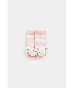 | At a Glance Soft with a little stretch to make them easy to pull onto wriggly feet, these striped socks feature little mouse characters on each toe. As your baby wriggles and kicks, the mice will reward them with gentle rattling sounds.