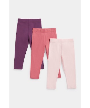 | At a Glance Made from cotton with a little added stretch, each pair of full-length leggings in this set are designed with a wide, flat waistband so they're all-day, every-adventure comfy. Our pack includes three pairs of leggings in shades of pink.