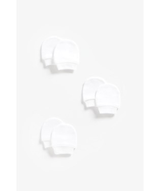 Features and benefits •3 pairs of scratch mitts •Interlock knitted cotton feels oh-so-soft, stretches easily yet keeps its shape wash after wash •Ribbed cuffs Fabric Composition : 100% cotton Instructions : Machine Washable 40% degree Safety Warning : keep away from fire Colour : White