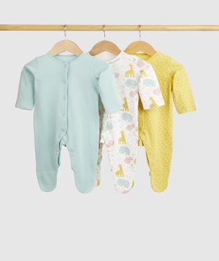 Mothercare Safari Baby Sleepsuits - 3 Pack