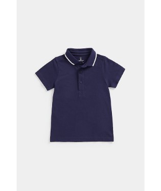 | At a Glance This navy polo shirt is made from breathable cotton for all-day comfort. In a regular fit with short sleeves and classic button fastening, it has sporty stripes on the knitted collar. Ideal for school.