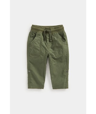 Features and benefits •Poplin trousers with roll-up hems (secured with popper) •Cotton for comfort •Wide, elasticated waistband •Drawcord for an adjustable and secure fit •Front and back pockets •Please note: the cord is fixed at the back for health and safety reasons so your child can't pull it all the way through Fabric Composition : 100% Cotton Instructions : Machine Washable Colour : Green