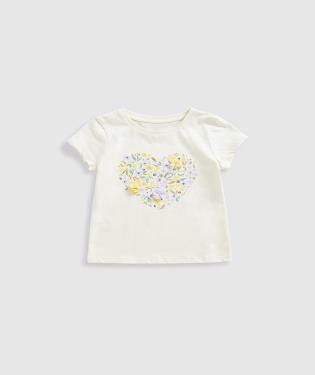A heart filled with delicate flowers decorates our cream coloured tee which is made from naturally-soft and breathable cotton for all-day comfort. In a soft, neutral colour it's easy to mix, match and layer.Responsibly sourced cotton is grown with all-natural growing methods, using less water to produce, and using no harmful chemicals. Safer for their skin and helping protect their world.