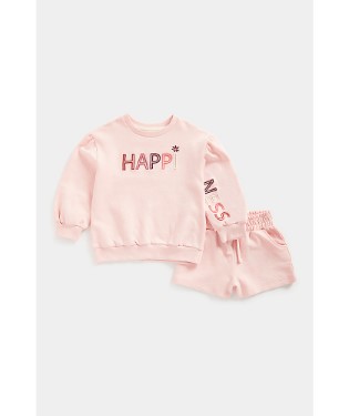 Features and benefits •2-piece outfit set •Loop-back cotton jersey •Sweat top with textured embroidery •Dropped shoulders for a relaxed fit •Ribbed neck, cuffs and hem •Tape covered back-neck seam to prevent irritation •Shorts with wide, elasticated waistband •Fixed drawcord •Pockets •All embroideries are fabric backed to prevent irritation Fabric Composition : 100% Cotton Instructions : Machine Washable Colour : Pink