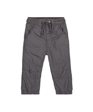 | At a glance Weve made this pair of classic trousers from soft, breathable cotton and added soft, jersey lining for extra cosiness. With a stretchy waistband, for exceptional comfort on your little explorers every adventure. A wardrobe must-have. Features and benefits • poplin trousers • jersey lined for cosy comfort • stretchy ribbed waistband and elasticated cuffs for a great fit • mock fly with popper fastening • lots of handy pockets • tie-cord (cord is fixed at the back to prevent little hands pulling it all the way through) Fabric Composition : 100% cotton Care Instructions : machine washable Safety Warning : keep away from fire Brand : Mothercare Colour : Grey |