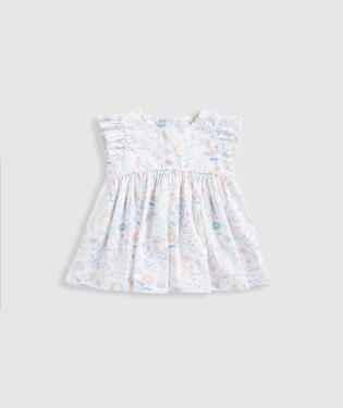 With mermaids playing among the pretty floral print, this cotton dress is the perfect companion for summer adventures. Responsibly sourced cotton is grown with all-natural growing methods, using less water to produce, and using no harmful chemicals. Safer for their skin and helping protect their world.