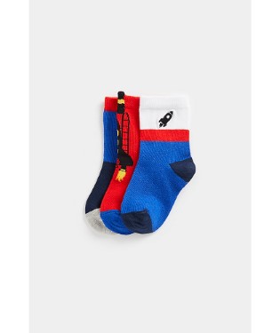 •3 pairs of short socks •Ribbed tops •Contrast coloured heel and toe •2 x rocket 1 x colour block Fabric Composition : Nylon, Cotton, Elastane Instructions : machine washable Safety Warning : keep away from fire Colour : Multi