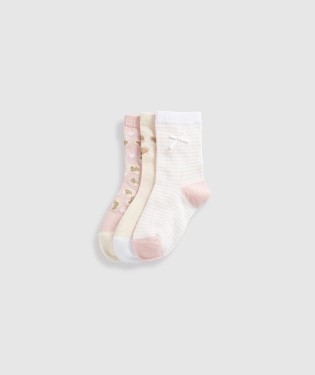 Features and benefits •3 pairs of short socks •Ribbed sock tops for a comfy fit •Contrast heel and toe •Bow detail Fabric Composition : 76% Cotton,22% Nylon,2% Elastane Instructions : Machine Washable