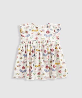 | At a Glance Bring sunny-day style to their wardrobe with this cool, cotton dress. Featuring fluttery frill sleeves and simply fastened with buttons.Responsibly sourced cotton is grown with all-natural growing methods, using less water to produce, and using no harmful chemicals. Safer for their skin and helping protect their world.