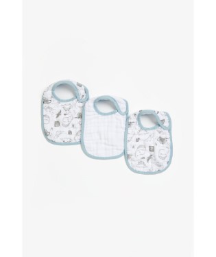 Mothercare Blue Dino Muslin Newborn Bibs - 3 Pack