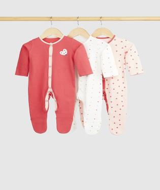 | At a Glance Your baby will go dotty for these sweet sleepsuits. Made from cotton to wrap them in cosy comfort right down to their tiny toes, each sleepsuit features poppers all the way down to make quick work of dressing and nappy changes. Responsibly sourced cotton is grown with all-natural growing methods, using less water to produce, and using no harmful chemicals. Safer for their skin and helping protect their world.