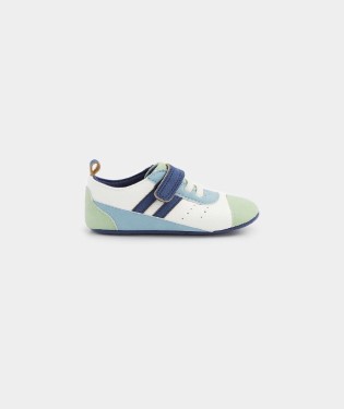 | At a Glance With multicoloured panels and sporty stripes, these baby trainers are ready to add the cutest finishing touch to first outfits. Lightweight and flexible with elasticated laces so toes can wiggle and feet can flex, they're securely fastened with an adjustable touch-close strap.