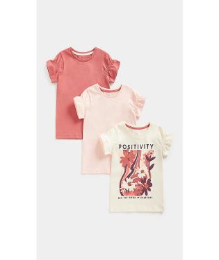 | At a Glance Bringing colour and positivity to a new season wardrobe, these pretty tees with detailed sleeves are made from naturally-soft and breathable cotton. Pack includes two pink tees amd a cream tee with positive print and embroidery.