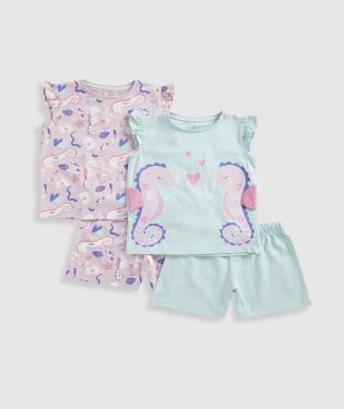 | At a Glance With under-the-sea prints and a whole herd of seahorse characters, these short pyjama sets are made for warmer nights. We love the seahorses with their flapping fabric fins!Responsibly sourced cotton is grown with all-natural growing methods, using less water to produce, and using no harmful chemicals. Safer for their skin and helping protect their world.