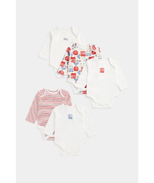Features and benefits •5 all-in-one bodysuits •Interlock knitted cotton feels soft, stretches easily yet keeps its shape wash after wash •Softly bound hems for comfort •Envelope neck which stretches for easy dressing - pull up over baby's head or down past their feet •Nickel-free popper fastenings Fabric Composition : 100% Cotton Instructions : Machine washable at 40 degrees Colour : White