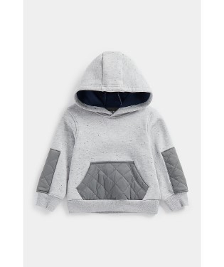 With contrasting quilted pockets and panels, this grey hooded sweat top is made from brushed-back cotton jersey so it feels super soft inside.