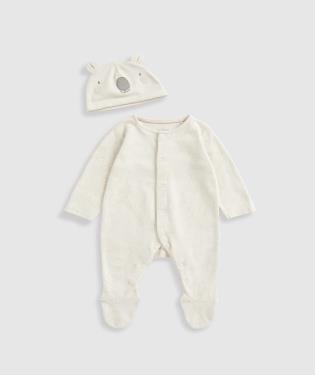 | At a Glance An outfit for the littlest adventurers. Our little kangaroo has been joined by all his friends to decorate the all-in-one outfit which is packed with thoughtful little details and features full popper opening to make dressing and changing easy. The outfit is completed with the cutest novelty hat. A lovely gift for a newborn.