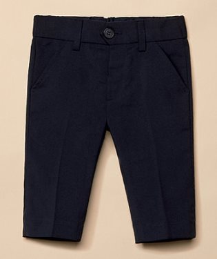 | At a glance When smarter trousers are called for, these navy trousers answer with style and comfort. Designed with a stretchy waistband for comfort and easy dressing but with a grown-up button fastening your little man will love. Finished with plenty of pockets (front and back) for important toys and treats. Features and benefits • occasion trousers • mock fly with button fastening • elasticated waistband for comfort • front and back pockets Fabric Composition : 60% polyester, 40% viscose Care Instructions : machine washable Safety Warning : keep away from fire Brand : Mothercare Colour : Blue |