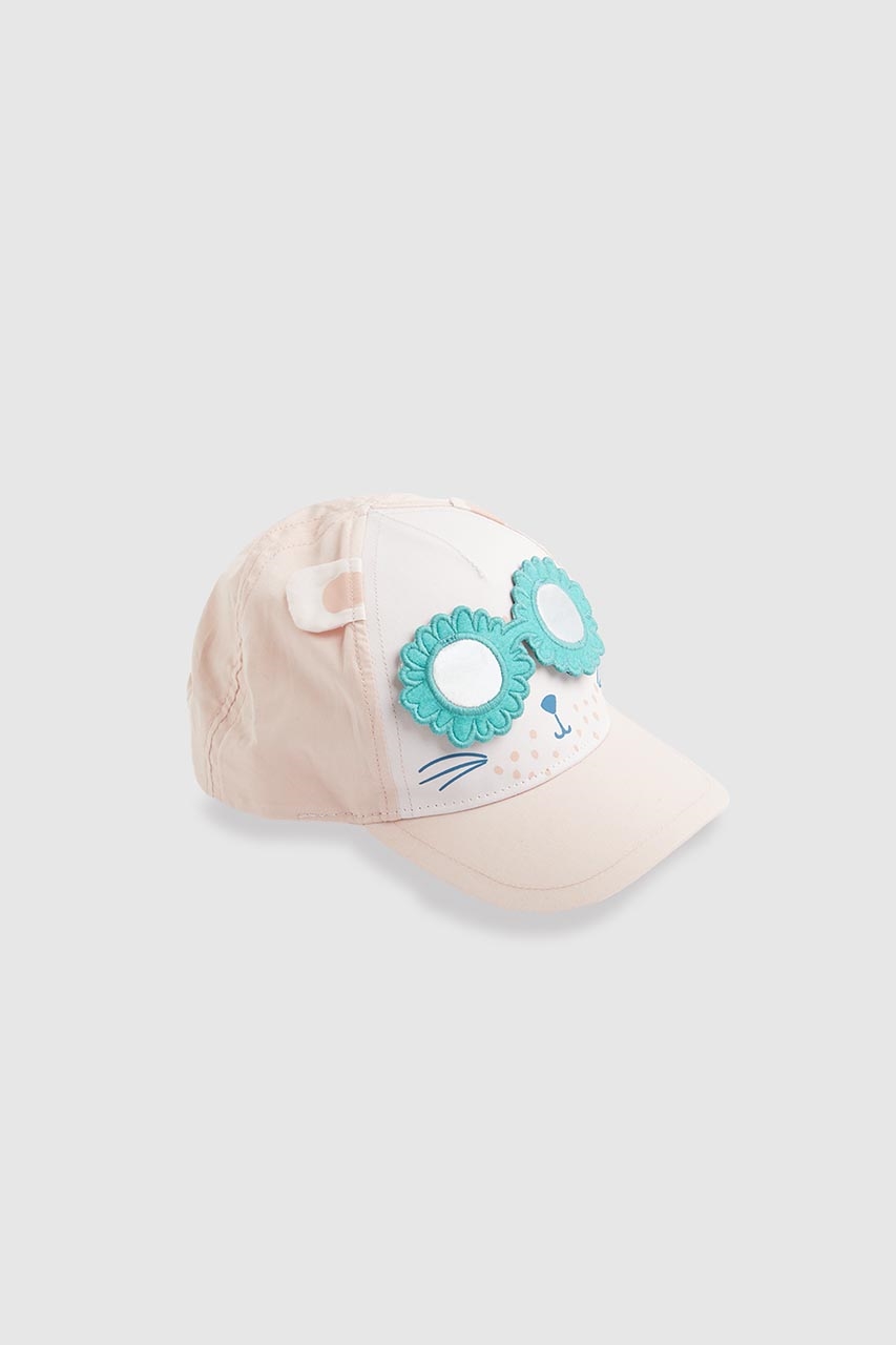 Features and benefits •Peaked cap to shade •Responsibly sourced cotton •Adjustable touch-close strap •Printed cat face •3D ears and interactive lift-the-flap glasses Fabric Composition : 100% Cotton Instructions : Machine Washable