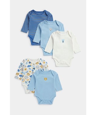 Mothercare Safari Long-Sleeved Bodysuits - 5 Pack